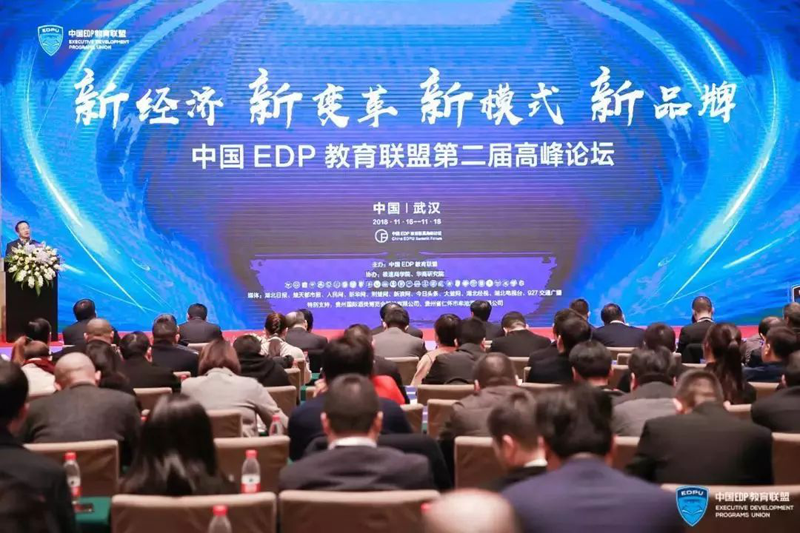 2018年11月16日-18日,中国EDP教育联盟第二届高峰论坛于湖北武汉东湖宾馆国际会议中心隆重举行。本届论坛以“新经济、新变革、新模式、新品牌”为主题,以商学教育力量助推中国新经济产业转型变革,让更多的企业在深度转型激流中找到“定盘星”和“压舱石”。